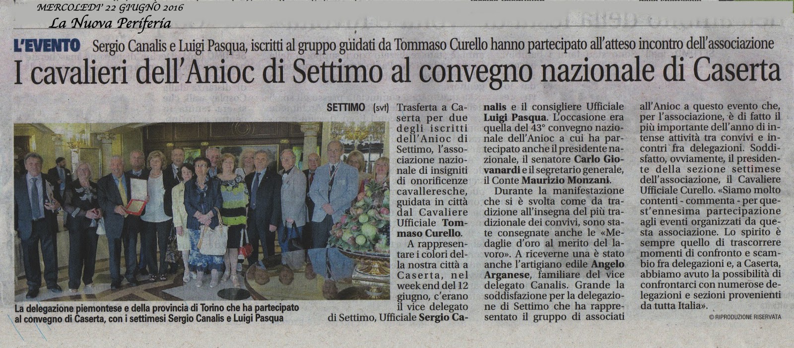CONVIVIO A.N.I.O.C. 16 GIUGNO 2019 Organizzato da SETTIMO TORINESE e del CANAVESE.